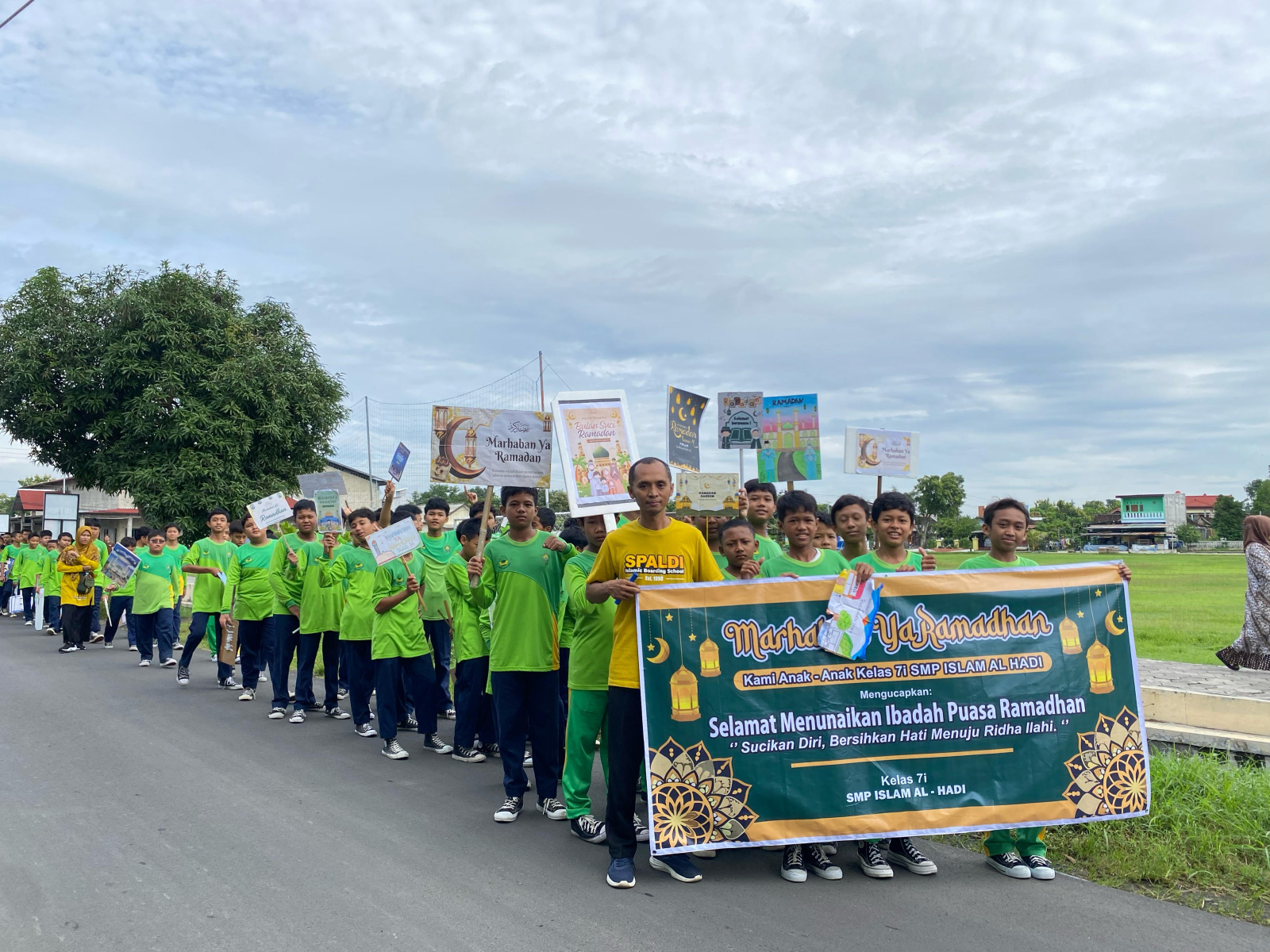 Assalamualaikum sahabat AH, Alhamdulillah SMP islam Al Hadi telah melaksanakan kegiatan Bakti Sosial dan Tahrib Ramadan dalam rangka menyambut bulan Ramadan 1446 H yang InsyaAllah jatuh di Sabtu, 1 Maret 2025 mendatang. Dibuka langsung oleh Ibu Nita Risnawati, S.Pd selaku pengawas SMP, pawai Ramadan diawali dari masjid Al Hadi mengelilingi kompleks sekitar.  Kegiatan ini menampilkan Marching Band, parade ekstra serta beragam kreativitas unik siswa-siswi SMP Islam Al Hadi. Kegiatan kali ini ditutup dengan pembagian hadiah untuk kelas-kelas dengan kreasi terunik.